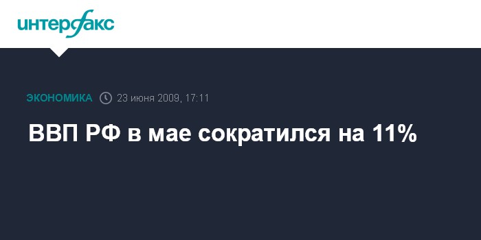 Москва. 23 июня. INTERFAX.RU - ВВП РФ в мае 2009 г. сократился на 11% к маю 2008 года, сообщил журналистам во вторник замглавы Минэкономразвития Андрей Клепач. За январь-май 2009 г. падение экономики составило 10,2%.