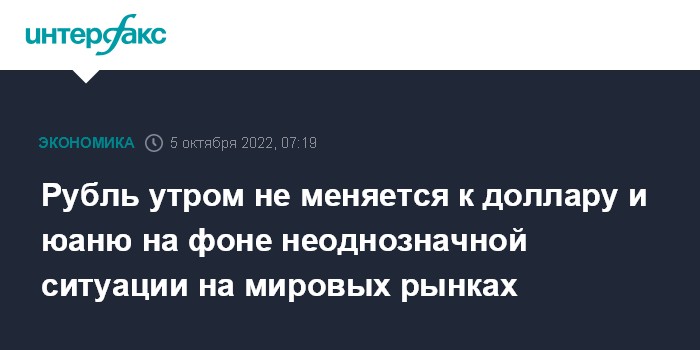 Рубль утром не меняется к доллару и юаню на фоне неоднозначной ситуации на мировых рынках