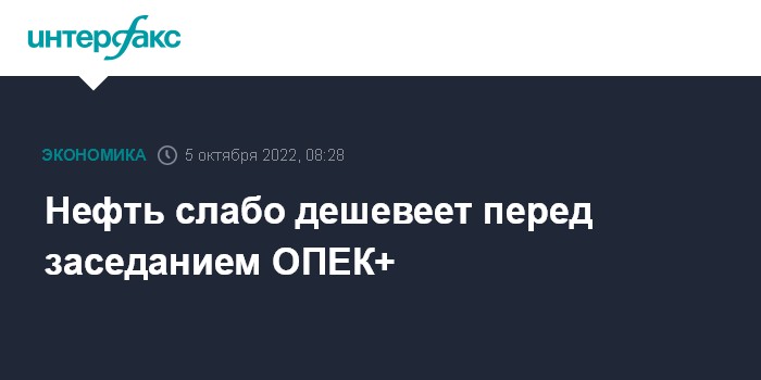 Москва. 5 октября. INTERFAX.RU - Цены на нефть слабо опускаются в среду после существенного подъема по итогам предыдущих двух сессий, рынок ждет заседания ОПЕК+.
