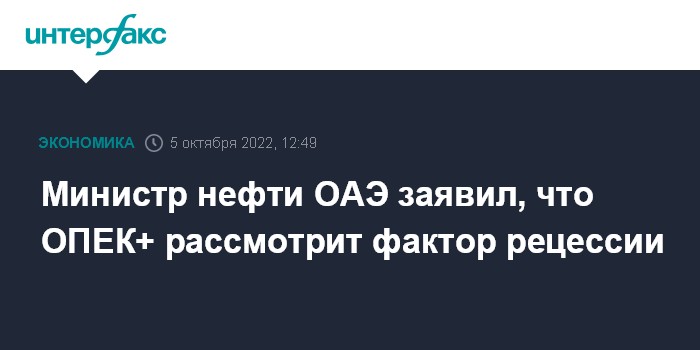 Министр нефти ОАЭ заявил, что ОПЕК+ рассмотрит фактор рецессии