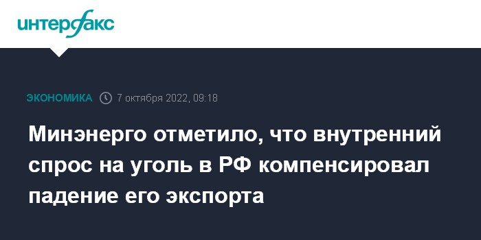 Минэнерго отметило, что внутренний спрос на уголь в РФ компенсировал падение его экспорта