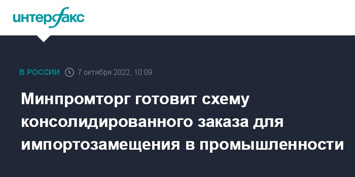 Минпромторг готовит схему консолидированного заказа для импортозамещения в промышленности