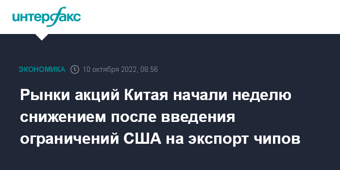 Рынки акций Китая начали неделю снижением после введения ограничений США на экспорт чипов