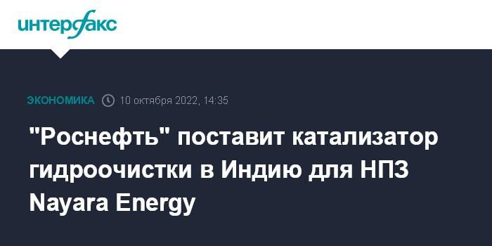 Как сообщила "Роснефть", первая партия - более 600 тонн - уже доставлена в Индию. До конца года российский катализатор планируется загрузить на установку гидроочистки дизельного топлива на НПЗ Nayara Energу.