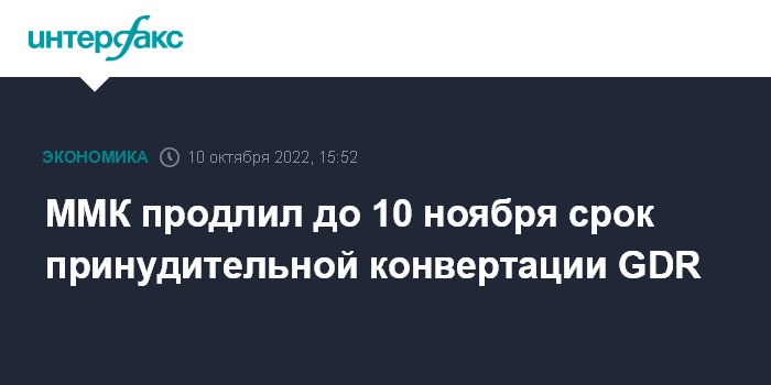 Москва. 10 октября. INTERFAX.RU - ПАО "Магнитогорский металлургический комбинат" продлило до 10 ноября сроки принудительной конвертации GDR.