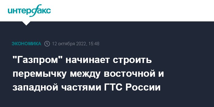 Москва. 12 октября. INTERFAX.RU - "Газпром" приступает к строительству перемычки между восточной и западной частями газотранспортной системы страны, сообщил председатель правления "Газпрома" Алексей Миллер на "Российской энергетической неделе".