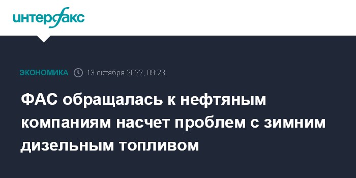 ФАС обращалась к нефтяным компаниям насчет проблем с зимним дизельным топливом