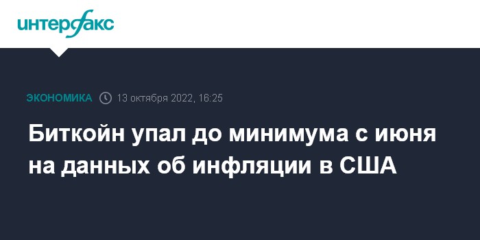 Биткойн упал до минимума с июня на данных об инфляции в США