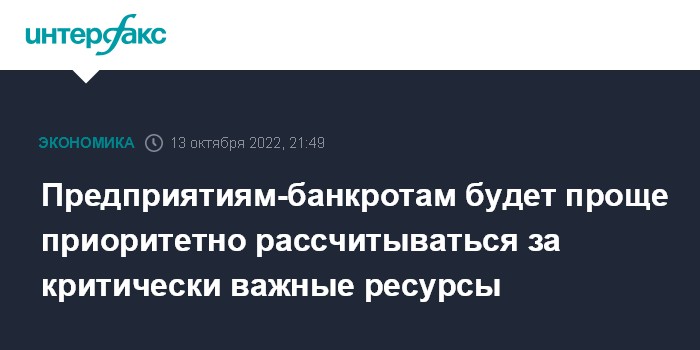 Предприятиям-банкротам будет проще приоритетно рассчитываться за критически важные ресурсы