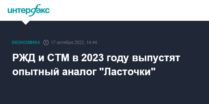 РЖД и СТМ в 2023 году выпустят опытный аналог "Ласточки"