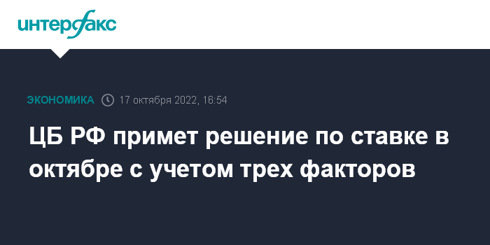 ЦБ РФ примет решение по ставке в октябре с учетом трех факторов