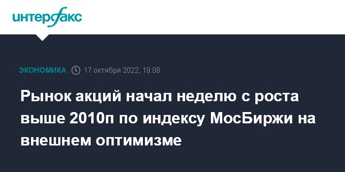 Рынок акций начал неделю с роста выше 2010п по индексу МосБиржи на внешнем оптимизме
