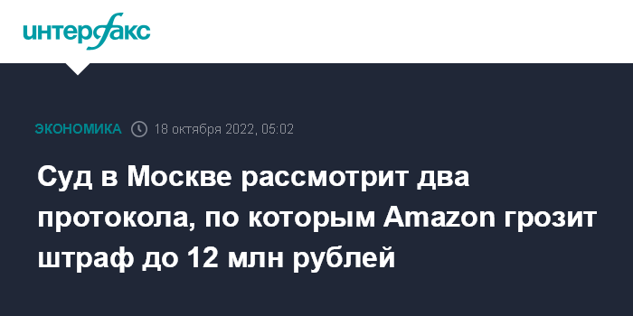 Суд в Москве рассмотрит два протокола, по которым Amazon грозит штраф до 12 млн рублей