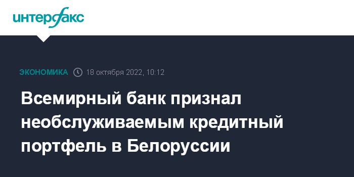 Всемирный банк признал необслуживаемым кредитный портфель в Белоруссии