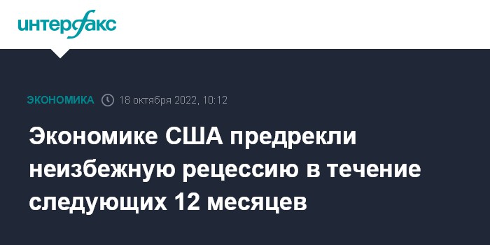 Экономике США предрекли неизбежную рецессию в течение следующих 12 месяцев