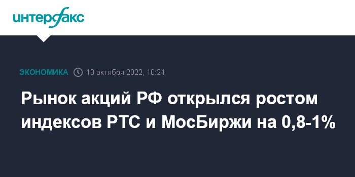 Рынок акций РФ открылся ростом индексов РТС и МосБиржи на 0,8-1%