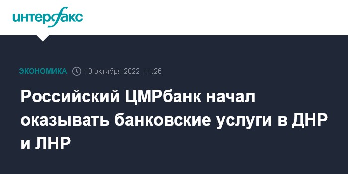 Российский ЦМРбанк начал оказывать банковские услуги в ДНР и ЛНР