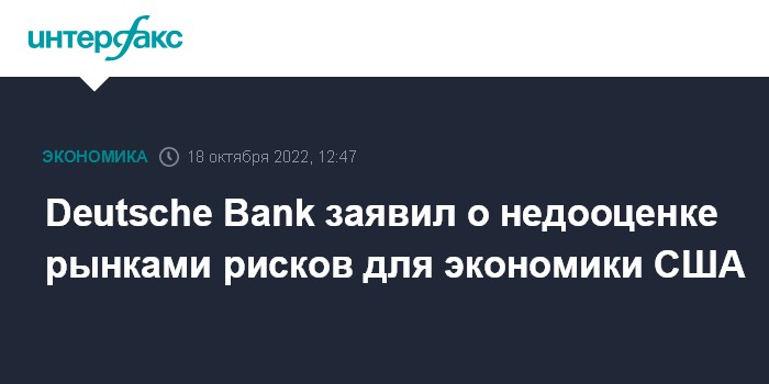 Deutsche Bank заявил о недооценке рынками рисков для экономики США