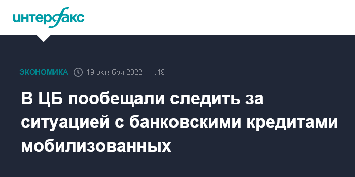 В ЦБ пообещали следить за ситуацией с банковскими кредитами мобилизованных