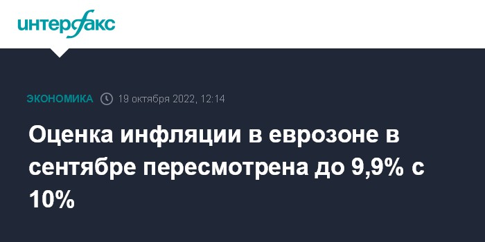 Оценка инфляции в еврозоне в сентябре пересмотрена до 9,9% с 10%