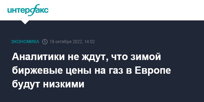 Москва. 19 октября. INTERFAX.RU - Наблюдающееся в последнее время в Европе резкое падение биржевых цен на природный газ не означает, что цены продолжат снижаться и останутся низкими в течение всей зимы, считают опрошенные агентством BNS аналитики.