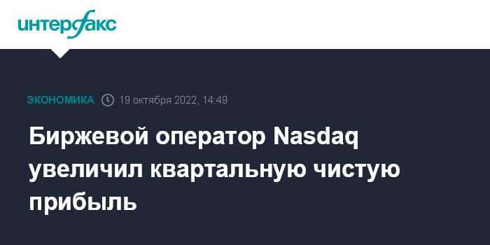 Москва. 19 октября. INTERFAX.RU - В третьем квартале 2022 года биржевой оператор Nasdaq Inc. увеличил чистую прибыль на 2,1%, при этом скорректированный показатель превысил прогноз.