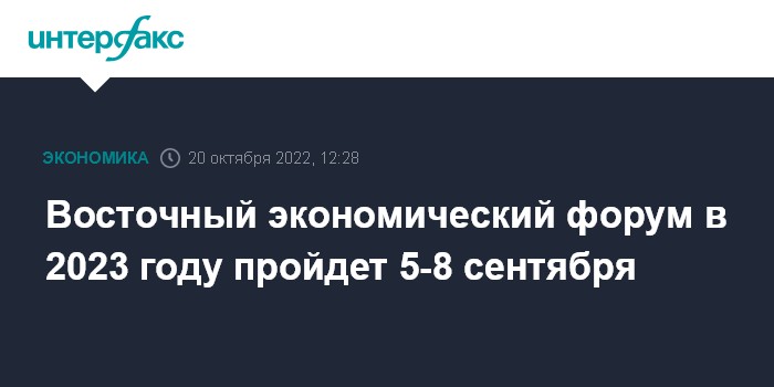 Восточный экономический форум в 2023 году пройдет 5-8 сентября