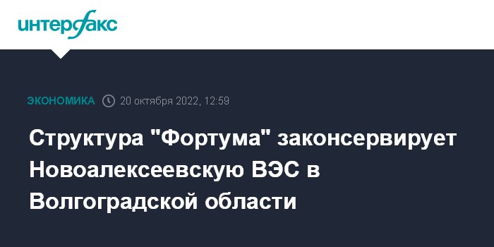 Структура "Фортума" законсервирует Новоалексеевскую ВЭС в Волгоградской области