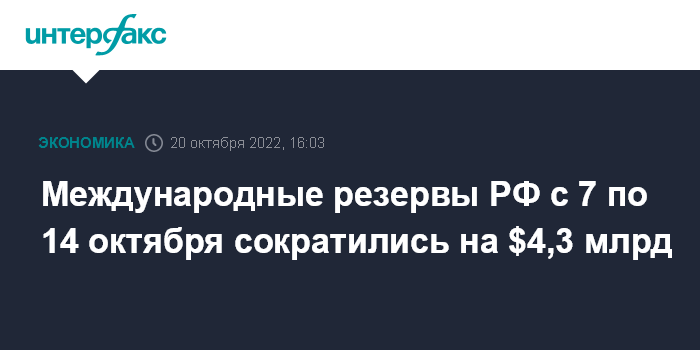 Международные резервы РФ с 7 по 14 октября сократились на $4,3 млрд