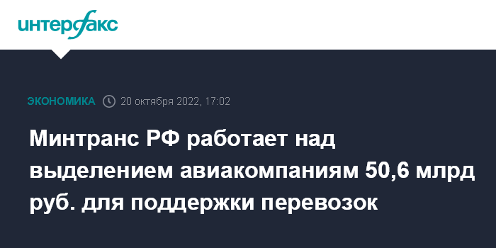 Минтранс РФ работает над выделением авиакомпаниям 50,6 млрд руб. для поддержки перевозок