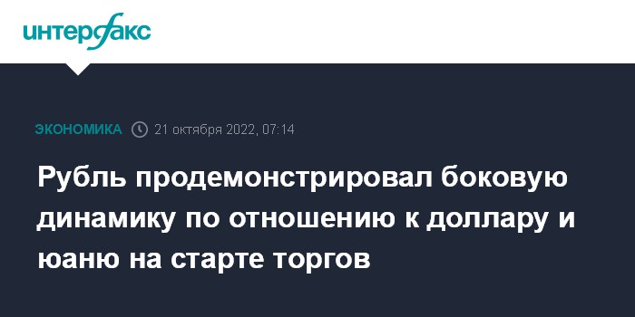 Москва. 21 октября. INTERFAX.RU - Доллар США незначительно растет, юань почти не меняется на "Московской бирже" на старте торгов в пятницу, сделок с евро в первые минуты не было, рубль демонстрирует боковую динамику на фоне неоднозначных сигналов, поступающих с мировых рынков.