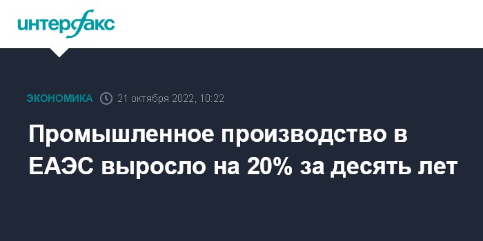 Москва. 21 октября. INTERFAX.RU - Промышленное производство в Евразийском экономическом союзе за десять лет выросло на 20%, что выше, чем аналогичный показатель в Европе, где рост составил всего 10%, сообщил премьер-министр РФ Михаил Мишустин, выступая в пятницу на встрече глав делегаций Евразийского межправсовета с президентом Армении Ваагном Хачатуряном.