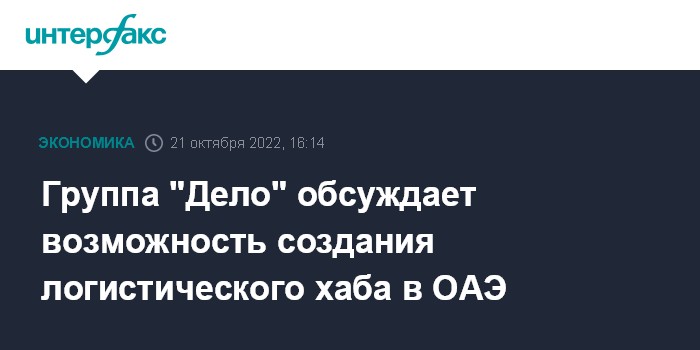 Группа "Дело" обсуждает возможность создания логистического хаба в ОАЭ