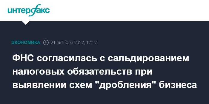ФНС согласилась с сальдированием налоговых обязательств при выявлении схем "дробления" бизнеса