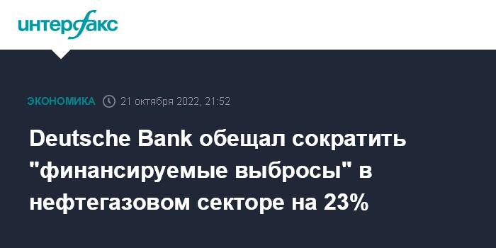 Deutsche Bank обещал сократить "финансируемые выбросы" в нефтегазовом секторе на 23%