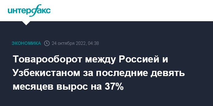 Товарооборот между Россией и Узбекистаном за последние девять месяцев вырос на 37%