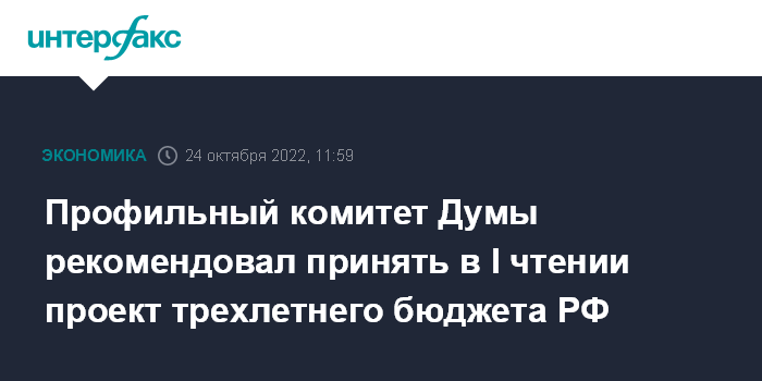 Москва. 24 октября. INTERFAX.RU - Комитет Госдумы по бюджету и налогам на заседании в понедельник рекомендовал принять в первом чтении проект федерального бюджета РФ на 2023-2025 гг.