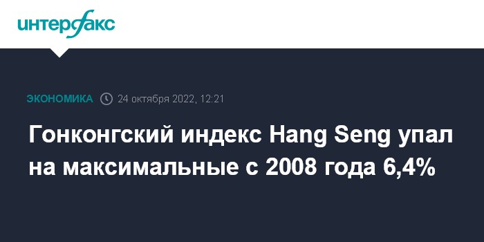 Москва. 24 октября. INTERFAX.RU - Фондовые индексы крупнейших стран Азиатско-Тихоокеанского региона в понедельник в основном выросли, однако рынки акций материкового Китая и Гонконга продемонстрировали существенный спад. Гонконгский Hang Seng в понедельник рухнул на 6,4% - до минимума более чем за 13 лет (с апреля 2009 года).