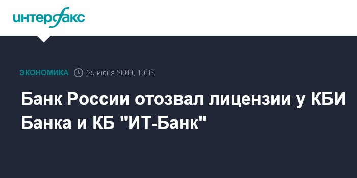 Банк России отозвал лицензии у КБИ Банка и КБ "ИТ-Банк"
