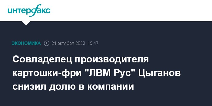 Совладелец производителя картошки-фри "ЛВМ Рус" Цыганов снизил долю в компании