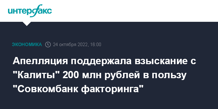 Апелляция поддержала взыскание с "Калиты" 200 млн рублей в пользу "Совкомбанк факторинга"