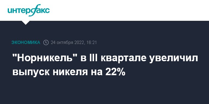 "Норникель" в III квартале увеличил выпуск никеля на 22%