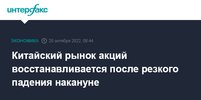 Китайский рынок акций восстанавливается после резкого падения накануне