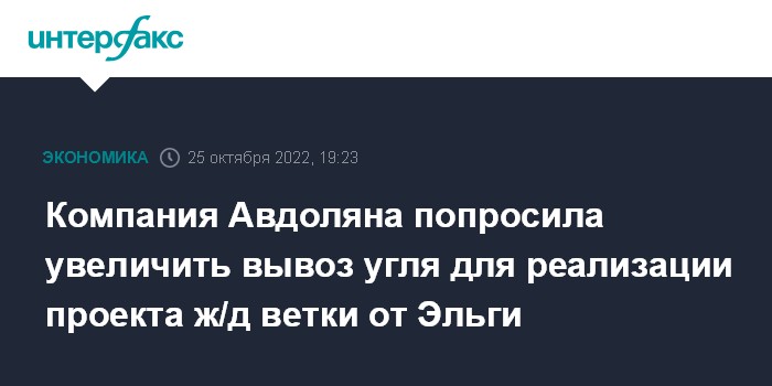 Компания Авдоляна попросила увеличить вывоз угля для реализации проекта ж/д ветки от Эльги