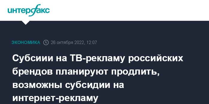 Субсиии на ТВ-рекламу российских брендов планируют продлить, возможны субсидии на интернет-рекламу