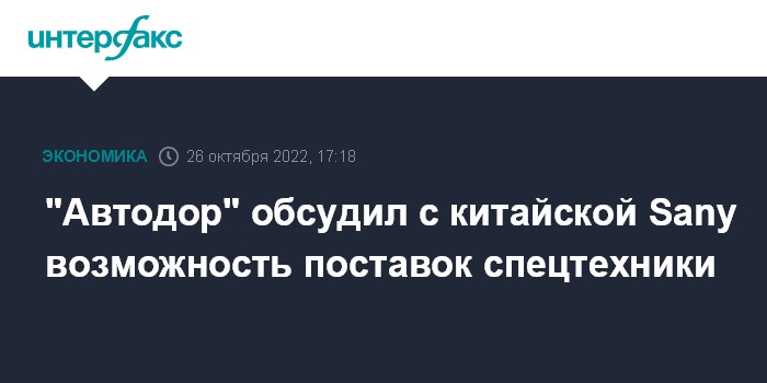 "Учитывая большой спектр техники, которую производит китайская компания, и разветвленную сеть дилерских центров, с которыми она сотрудничает в России, стороны обсудили варианты взаимодействия. В частности, шла речь о перспективах поставок техники российским компаниям через ООО "Автодор-лизинг"", - говорится в сообщении.