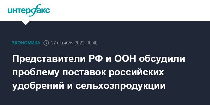 Представители РФ и ООН обсудили проблему поставок российских удобрений и сельхозпродукции