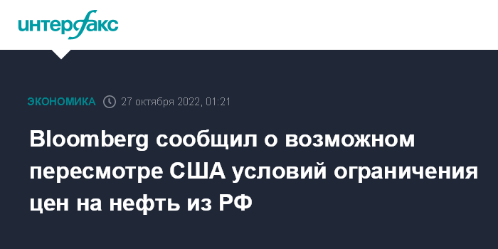 Москва. 27 октября. INTERFAX.RU - Администрация президента США Джо Байдена при работе над идеей потолка на нефть из РФ, пересматривает возможные условия в сторону смягчения, сообщает Bloomberg со ссылкой на источники.