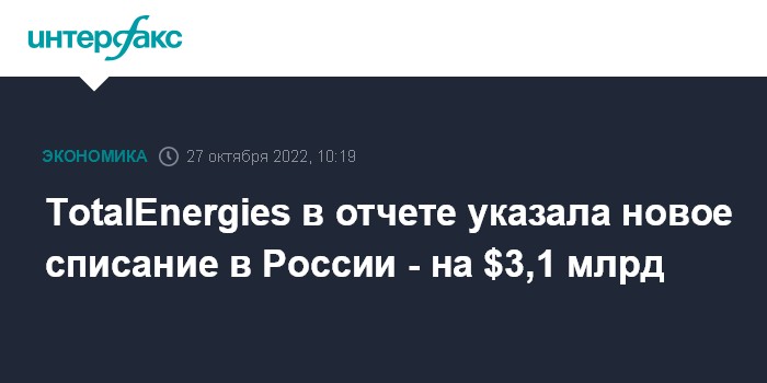 TotalEnergies в отчете указала новое списание в России - на $3,1 млрд