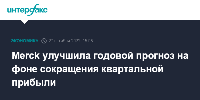 Москва. 27 октября. INTERFAX.RU - В III квартале 2022 года американская фармацевтическая компания Merck & Co. снизила чистую прибыль, но ее скорректированная прибыль и выручка превзошли ожидания рынка. Компания улучшила собственный годовой прогноз.